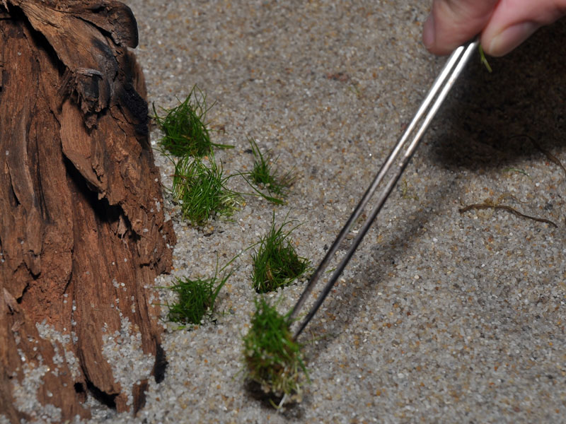 Eleocharis parvula ist mit ihren kurzen Blättern, ihrem luftigen Wuchs und den zahllosen Ausläufern eine der besten teppichbildenden Vordergrundpflanzen. Sie ist pflegeleicht und anspruchslos. Sie wird in kleinen Büscheln auf der zu bedeckenden Fläche gepflanzt und wächst bei guten Lichtverhältnissen schnell zu einem dichten, üppigen "Rasen" zusammen. Wenn der "Rasen" zu hoch wird, kann er mit einer Schere einfach bis auf einige wenige Zentimeter heruntergeschnitten werden.